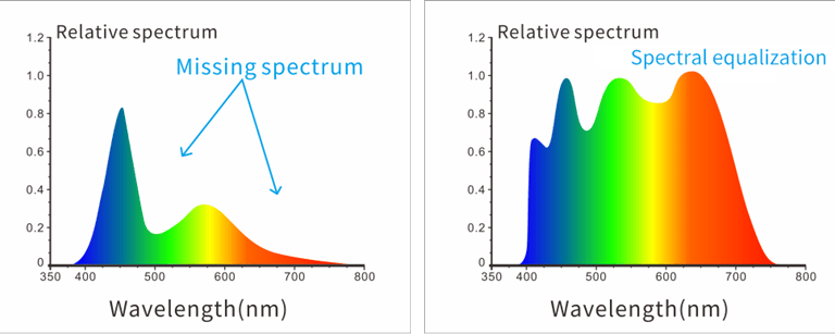 The use of 360-700nm full-spectrum LED light source ensures sufficient spectral distribution in the visible light range, avoids the lack of spectrum in specific bands, strong light will not be saturated, weak light is more sensitive, and fluorescent samples can also be easily measured.