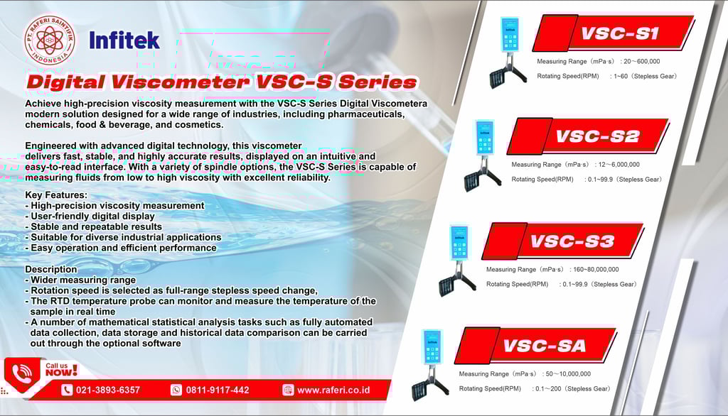 Dalam dunia industri dan laboratorium, pengukuran viskositas memegang peranan penting dalam memastikan kualitas, konsistensi, dan performa produk. Mulai dari industri makanan, farmasi, kosmetik, hingga kimia—semua membutuhkan alat ukur yang akurat, stabil, dan mudah digunakan. Di sinilah Digital Viscometer VSC-S Series hadir sebagai solusi unggulan.