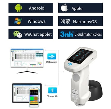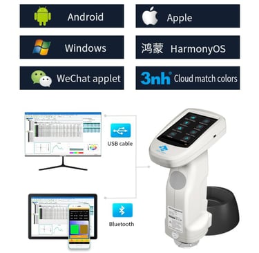 Offer CIE LAB, XYZ, Yxy, LCh, CIE LUV, S-RGB, HunterLab, βxy, DIN Lab99, Munsell(C/2) color spaces, and D65, A, C, D50, D55, D75, F1, F2(CWF), F3, F4, F5, F6, F7(DLF), F8, F9, F10(TPL5), F11(TL84), F12(TL83/U30), B, U35, NBF, ID50, ID65, LED-B1, LED-B2, LED-B3, LED-B4, LED-B5, LED-BH1, LED-RGB1, LED-V1, LED-V2, LED-C2, LED-C3, LED-C5. It also can costumized light source (A total of 41 of light source, Partially realize through the PC software / APP software), and can meet the special measurement requirements under different measurement conditions.