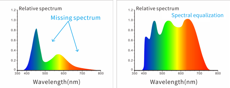 The use of 360-700nm full-spectrum LED light source ensures sufficient spectral distribution in the visible light range, avoids the lack of spectrum in specific bands, strong light will not be saturated, weak light is more sensitive, and fluorescent samples can also be easily measured.