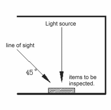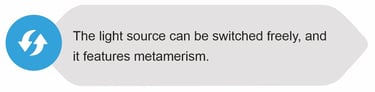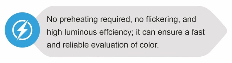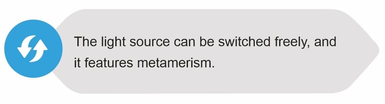 The T90-7-AW light box is specically designed for color evaluation and accurate checking of color deviations in industrial production. Therefore, it should be placed in the optimal assessment environment. The work surface and surrounding areas should be of a neutral color with low gloss. External light interference should be avoided, and external light should not directly shine on the opening of the observation chamber. After the light tubes have been on for 20-30 minutes, the color temperature, color rendering index, and illuminance reach their optimal states. The items to be inspected should be placed in the center of the light box baseboard. When comparing the colors of two or more items, they should be placed side by side and close together. The observation angle should ideally be with the light source at 90° and the line of sight at 45°. The light source should shine vertically onto the items being inspected, and the observer should look at them from a 45° angle